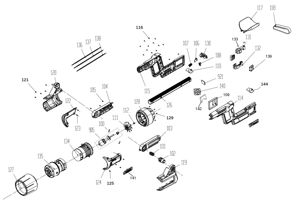 Ergonomická rukojeť se Softgripem, nízká hmotnost a ramenní popruh zajišťují pohodlnou práci i po delší dobu. Tento model je dodáván bez baterie a nabíječky, které lze dokoupit samostatně v rámci systému Power X-Change.